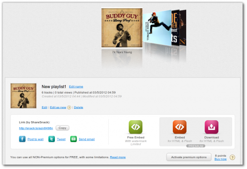 Как это может выглядеть на вашей странице, вы могли видеть в начале этого поста. Не менее красиво и удобно виджет плеера смотрится в виде записи в Facebook. В своей учетной записи на сервисе Podsnack можно удалять и редактировать свои плейлисты, а также смотреть статистику прослушиваний.